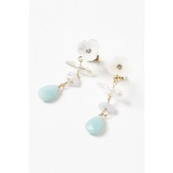 Oliver Bonas Natural Kali Golden And Tort Interlinked Chains And Faux Pearl Drop Hoop Earrings