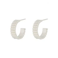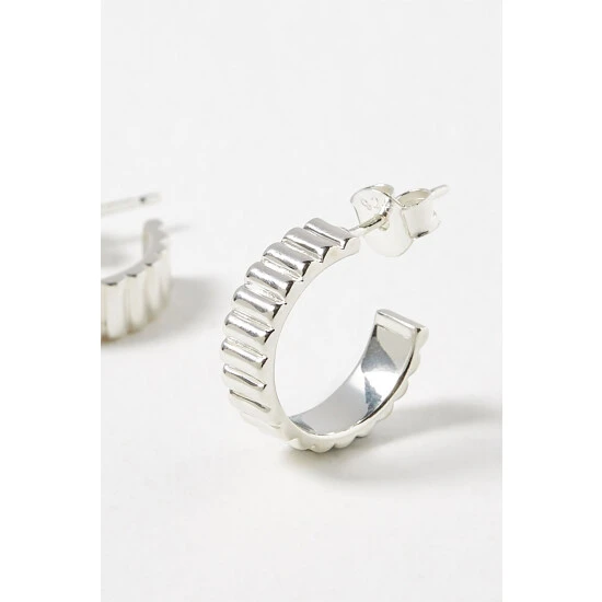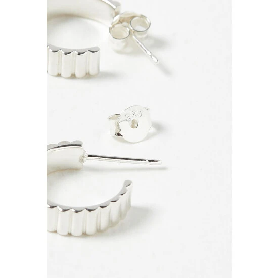 Oliver Bonas Aleena Ribbed Texture Statement Silver Plated Hoop Earrings