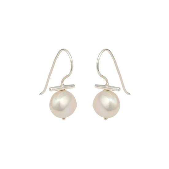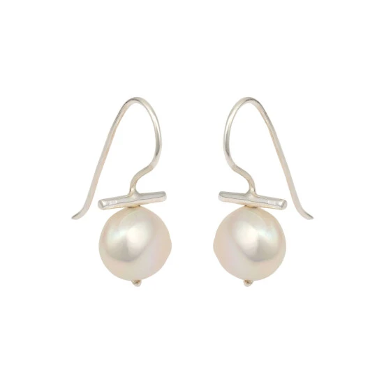 Elegant yet striking, these dainty drop earrings feature silver 925 hooks anchored by horizontal bars and large freshwater pearls.