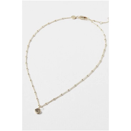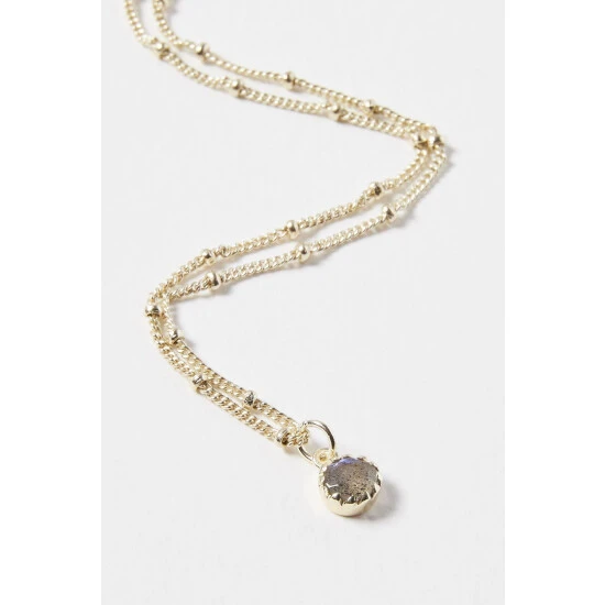 Oliver Bonas Alula Round Labradorite Drop Gold Plated Pendant Necklace