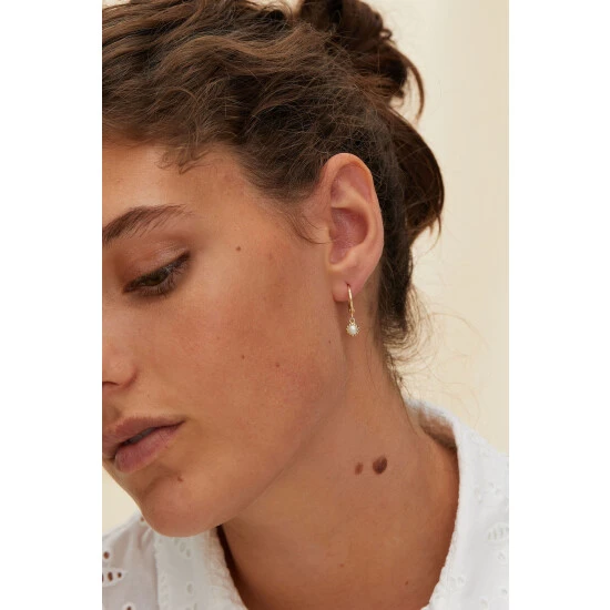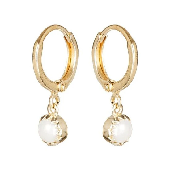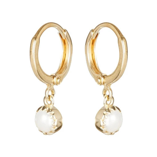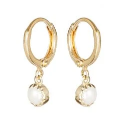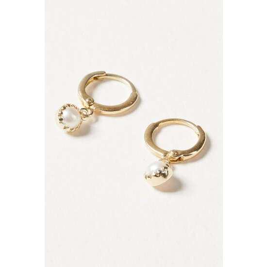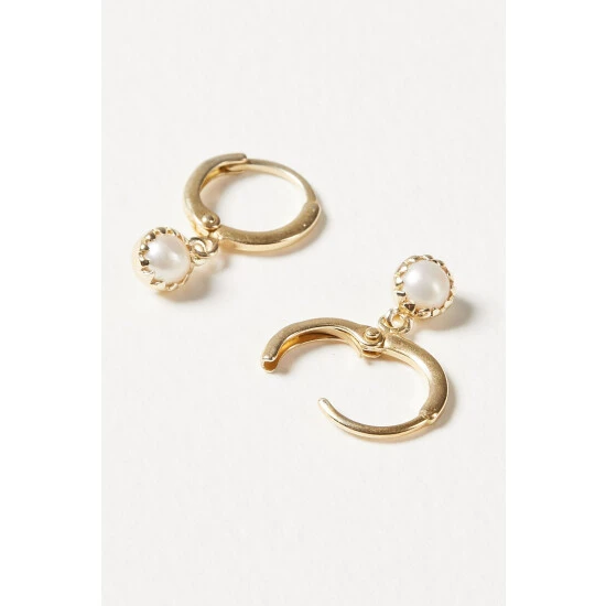 A delicate design, these huggie hoop earrings feature singular pearl drops set in sleek golden metalware.