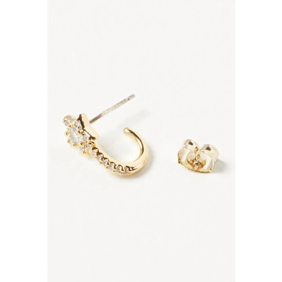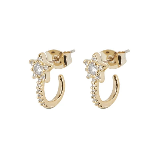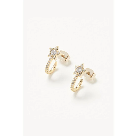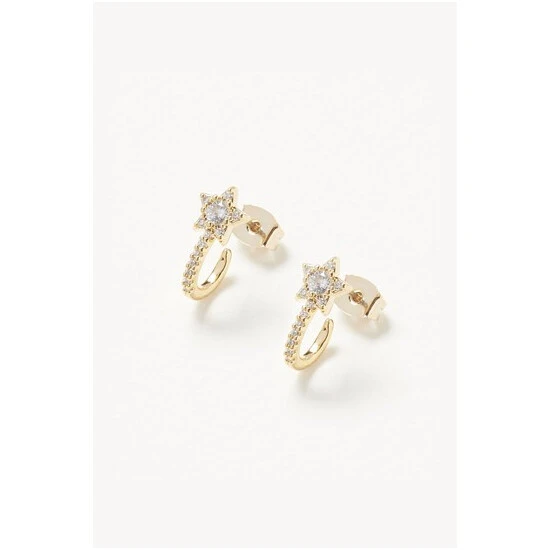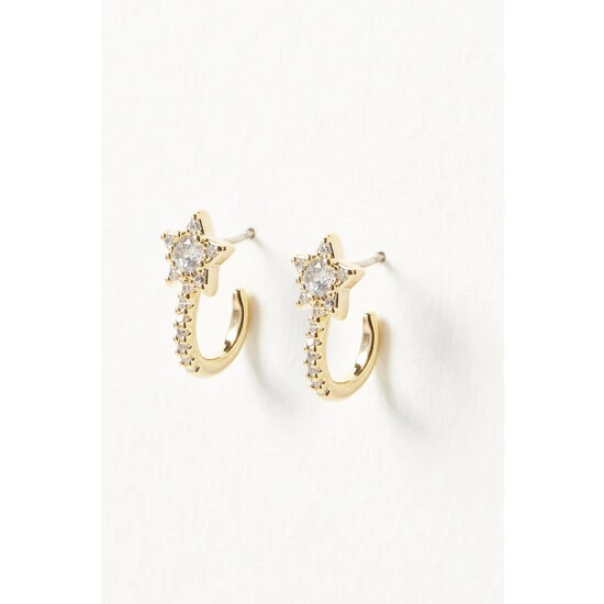Shimmering stones cover gold-toned hoop earrings and are detailed with a star fixed below.