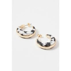 Oliver Bonas Green Corliss Square Stone And Engraved Disc Stud Malachite, Gold Plated Brass Earrings