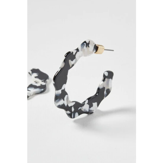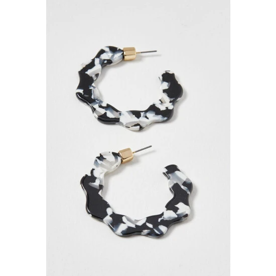 Oliver Bonas Black Eden Wavy Monochrome Resin Hoop Earrings