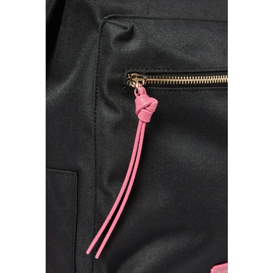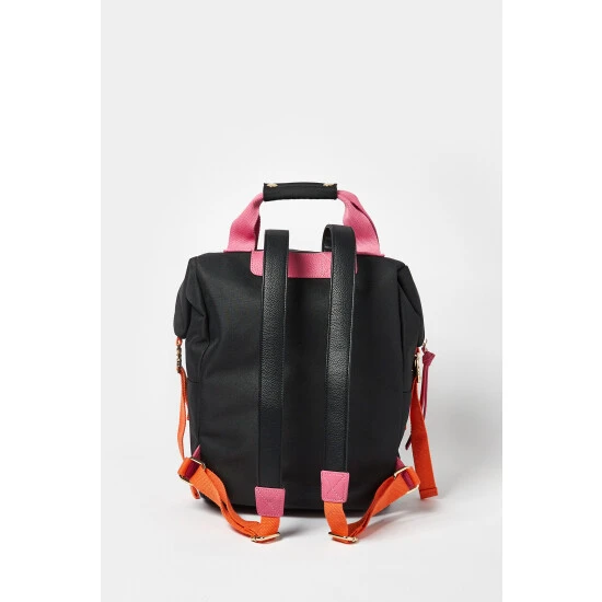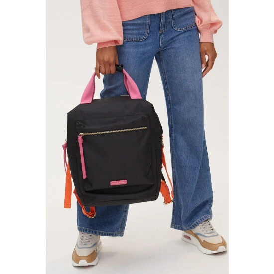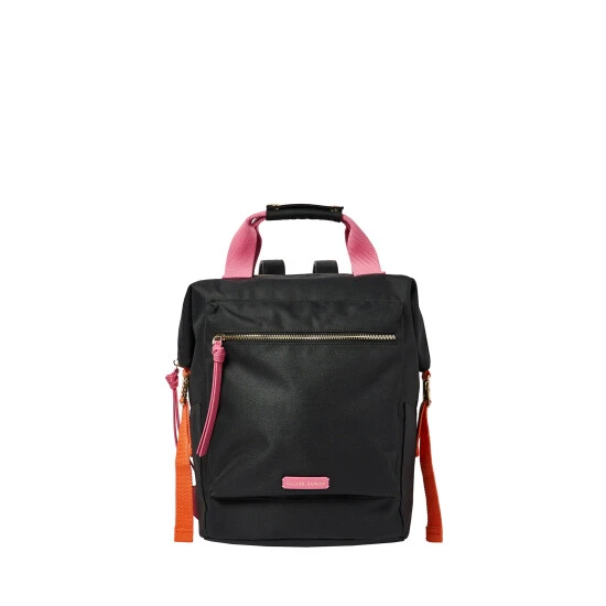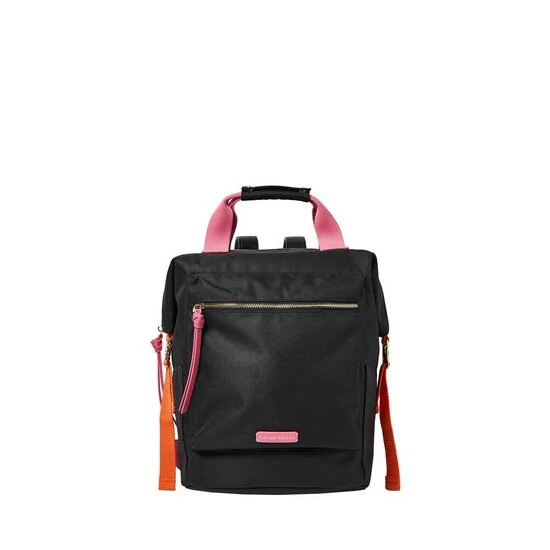 Stay hands-free whilst you’re out and about with this slouchy backpack in a neutral black tone, complemented by pink handles and orange straps for a pop of colour. With inner and outer pockets to keep your bag organised, it’s finished with gold toned metalware.