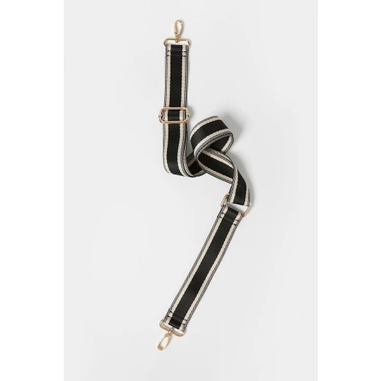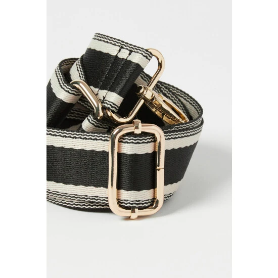 Switch up your strap with this replacement bag strap in a black and white striped pattern with gold-toned metalware.