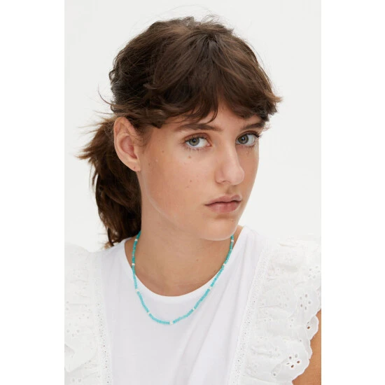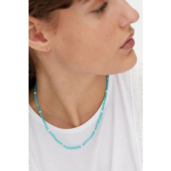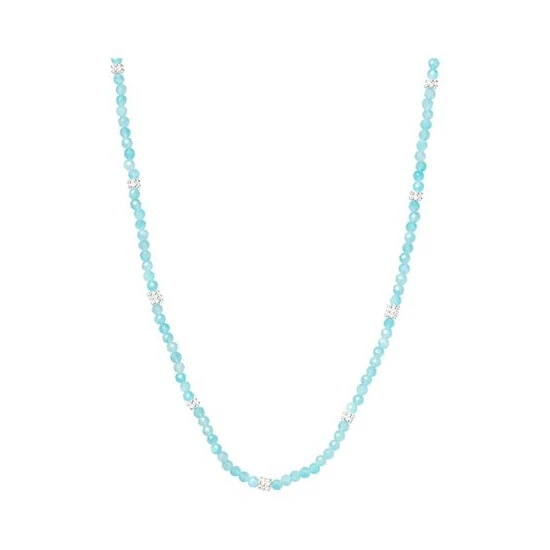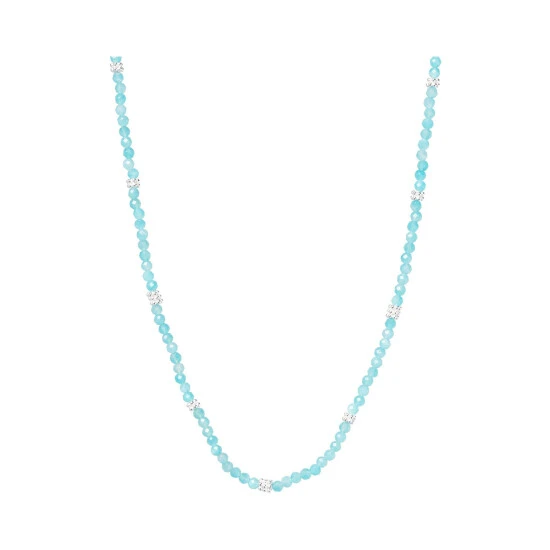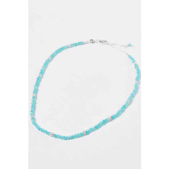 Blue stone beads are threaded through a silver chain with matching silver spacers to create this vibrant necklace, complete with a lobster clasp fastening and extendable length.