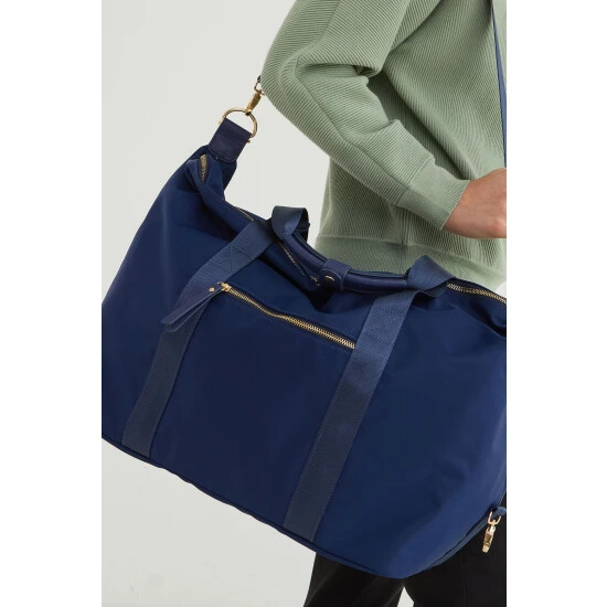 Main 80% Nylon, 15% Polyester, 5% Polyurethane. Lining 100% Polyester.