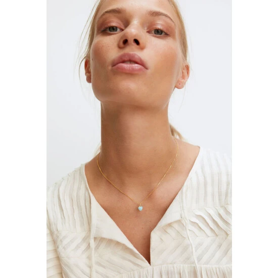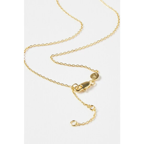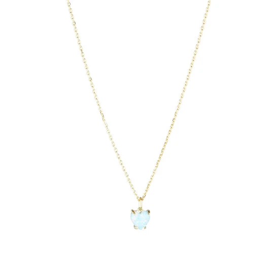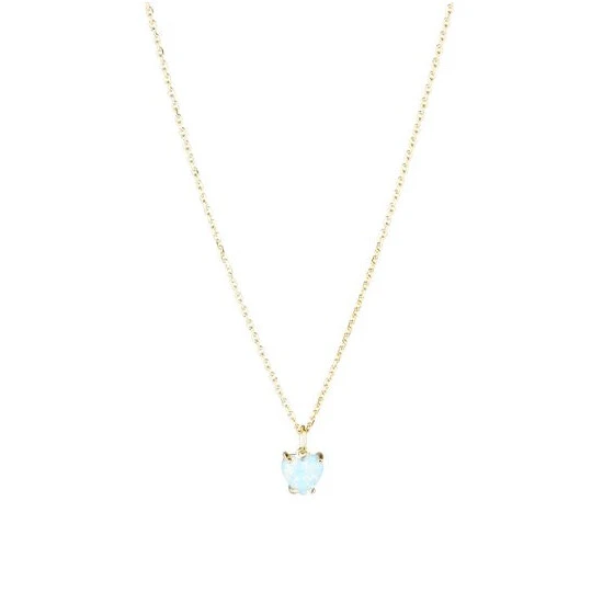 This gold-plated necklace features a fine chain detailed with a blue heart shaped stone pendant, complete with an extendable chain and a lobster clasp.