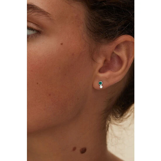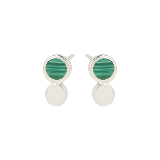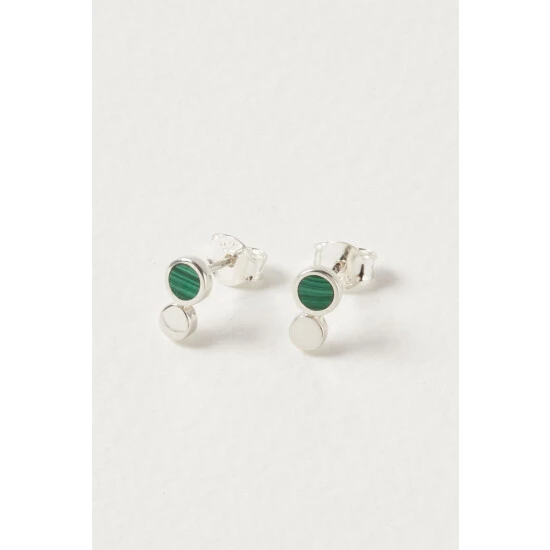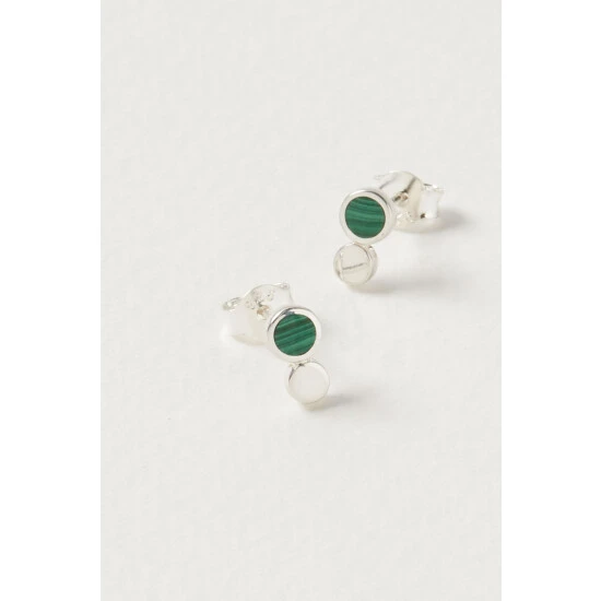 Oliver Bonas Briar Disc And Green Malachite Inlay Dot Sterling Silver Earrings