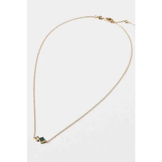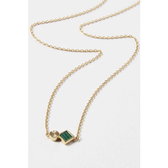 Oliver Bonas Corliss Square Stone & Engraved Disc Gold Plated Necklace