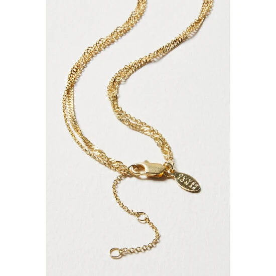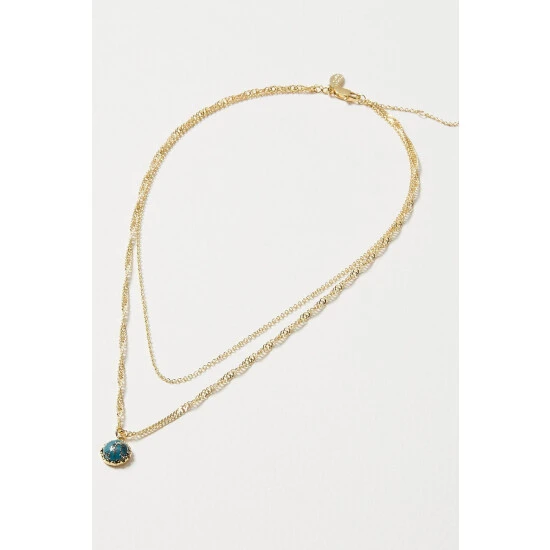 Featuring twisted and cable chains, this double row necklace is an effortless layering piece, completed with a blue stone charm.
