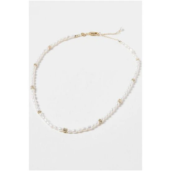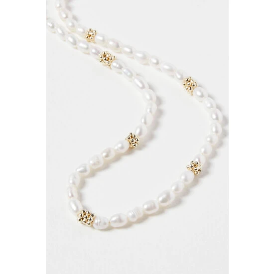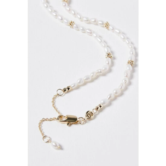 Making a dainty addition, this necklace features a pearl beading with gold-plated details, complete with an adjustable chain and lobster clasp.