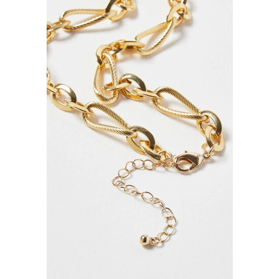 Oliver Bonas Evelyn Textured & Twisted Links Chunky Gold Tone Chain Necklace
