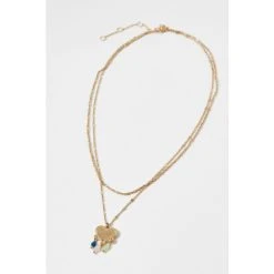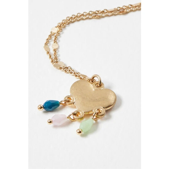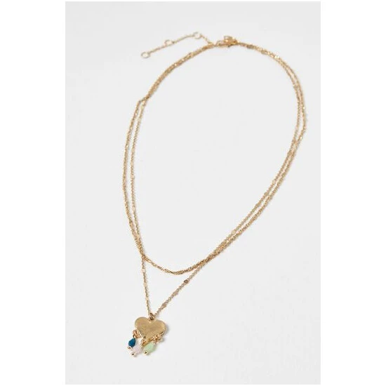 Oliver Bonas Gold Athena Heart And Beaded Charms Layered Chain Necklace