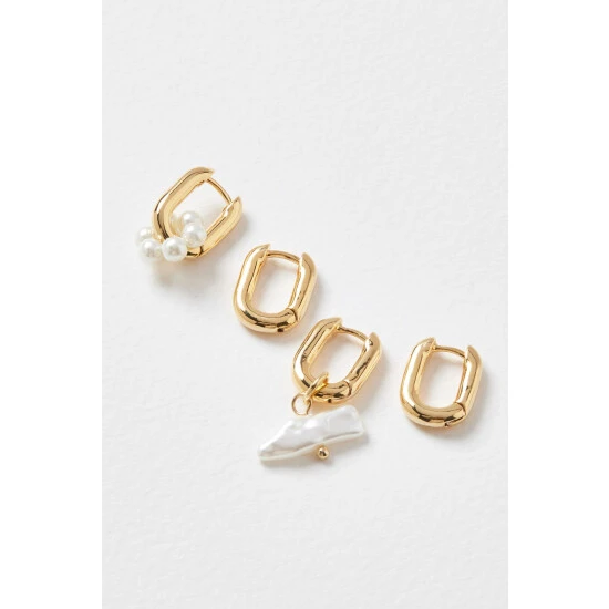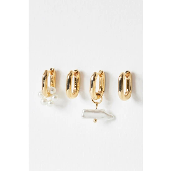 Oliver Bonas Gold Bondi Pearl Mismatched Hoop Earrings Pack Of Four