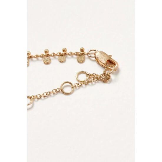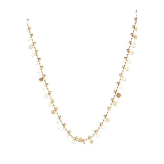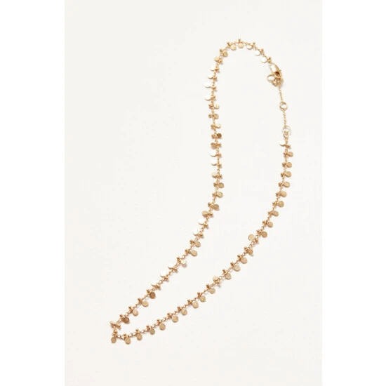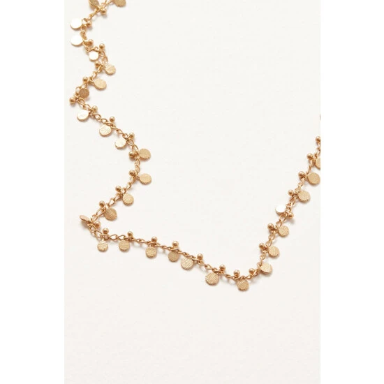 Perfect for layering, brass discs decorate this necklace chain all in a golden tone. With an adjustable length and lobster clasp, add to your outfit to add some texture and movement.