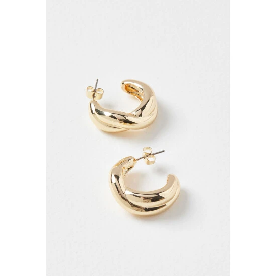 These gold-toned hoop earrings come in an intertwined shape, complete with stud backs.