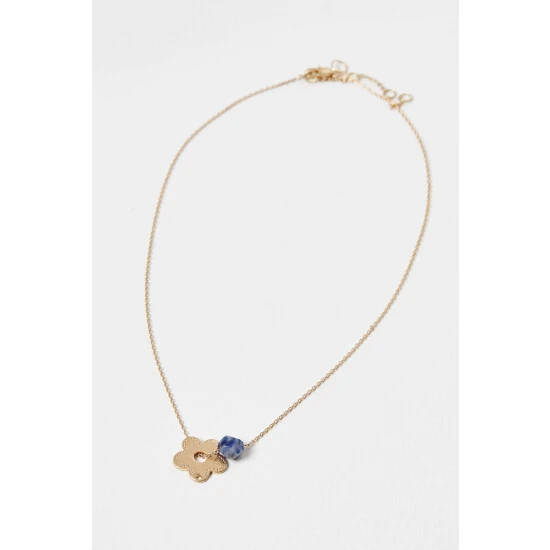 Oliver Bonas Gold Nerida Flower And Blue Stone Pendant Necklace