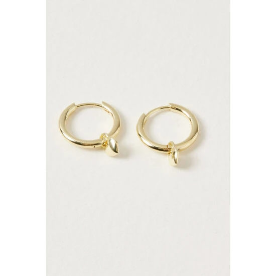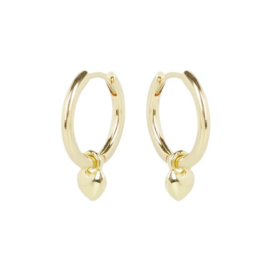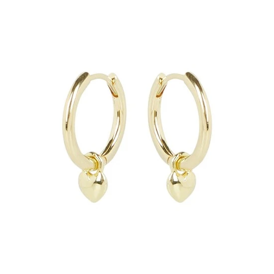 Anchored by delicate heart charms, these golden huggie earrings will add a little love to your lobes.