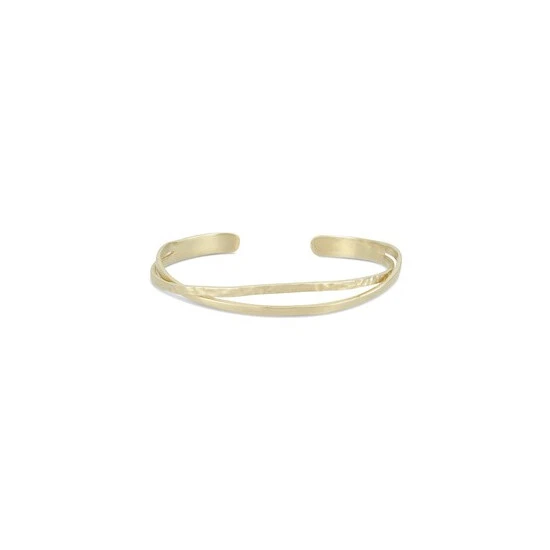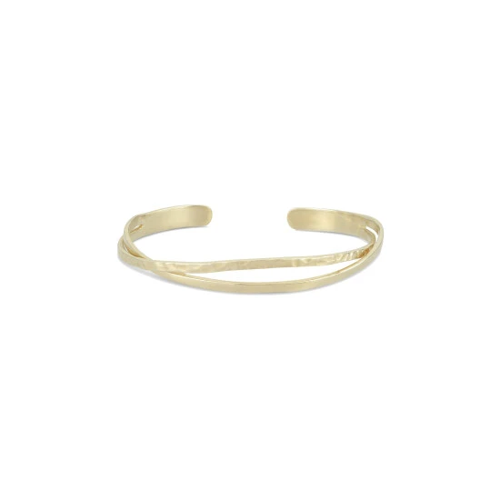 Define your wrist with this gold-plated open cuff style bangle, featuring a twisted design with contrasting hammered and smooth finishes.