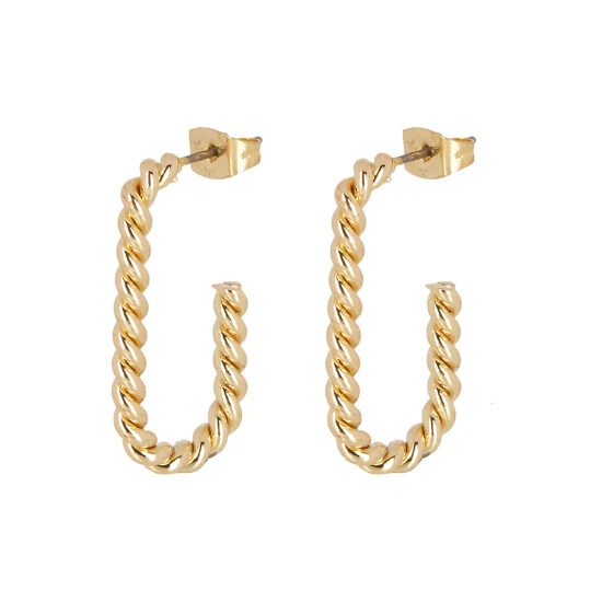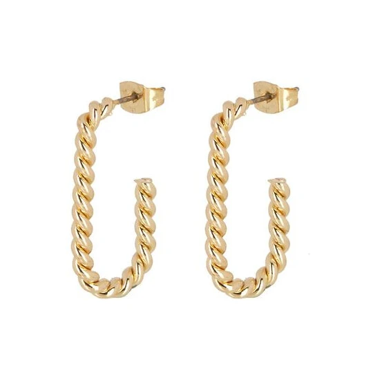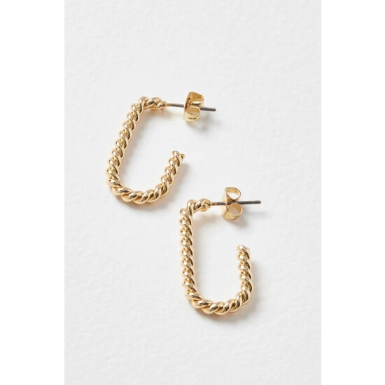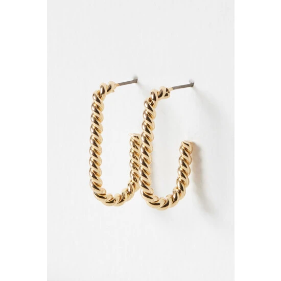 These gold-toned hoop earrings come in an oval profile with a twisted structure, complete with stud backs.