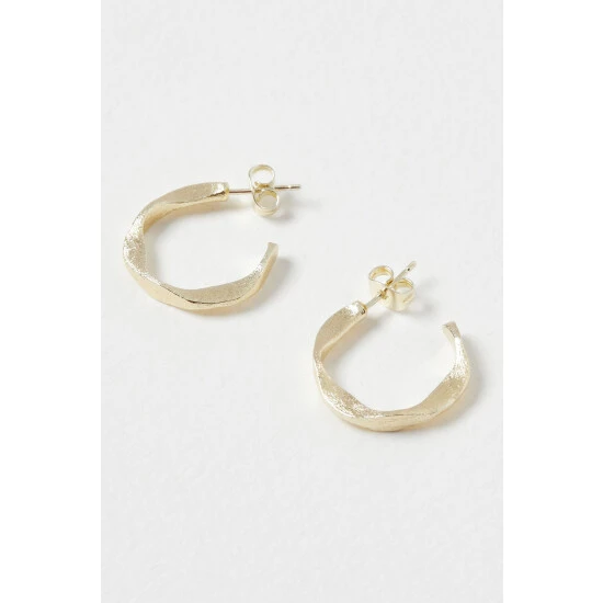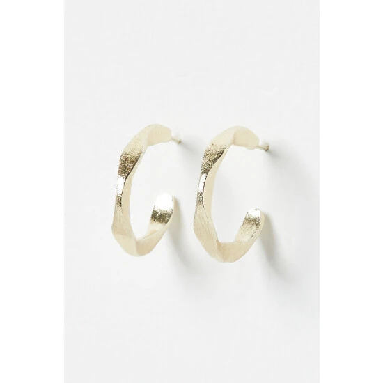 This pair of gold-plated hoop earrings come in a twisted structure, complete with stud backs.