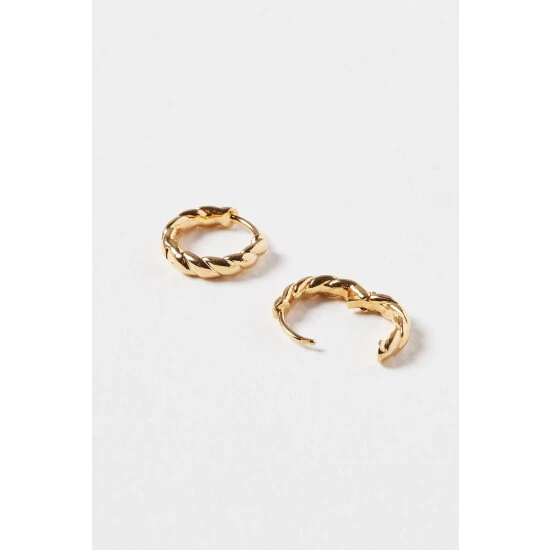 Give your hoops a golden twist with these dainty gold-plated earrings on huggie backs, featuring a curved design in a high-shine finish.
