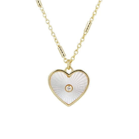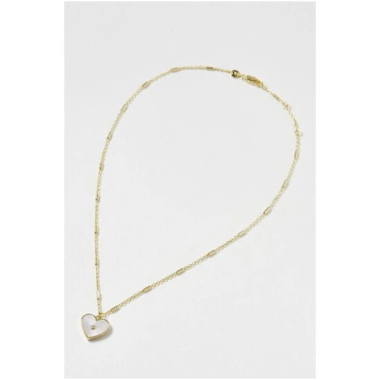 Oliver Bonas Gold Tone Kairi Engraved Mother Of Pearl Heart Drop Pendant