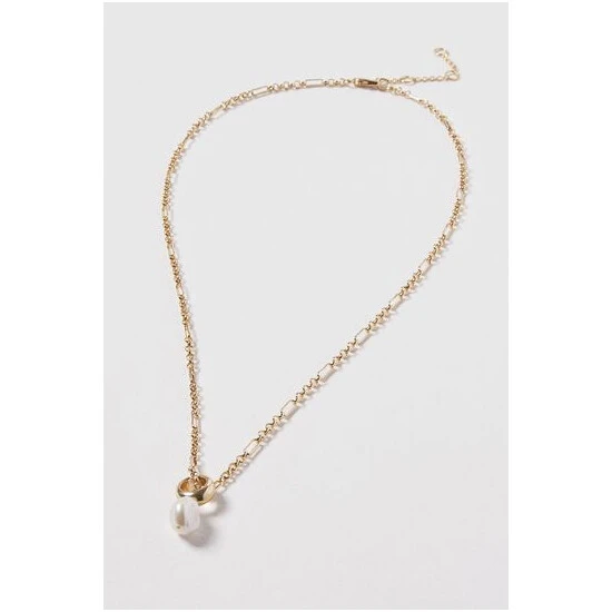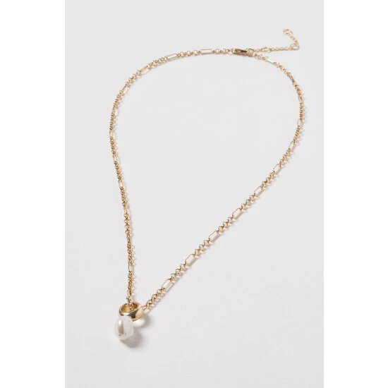 Oliver Bonas Gold Tone Rafa Round Bead Pearl Drop Chain Necklace