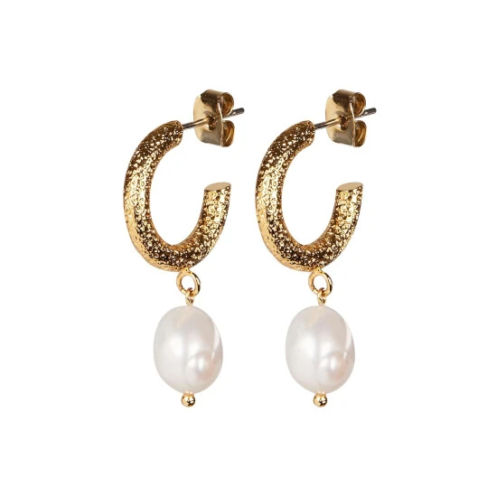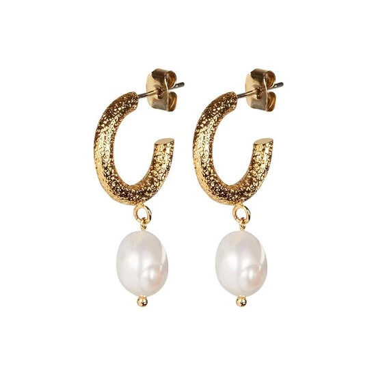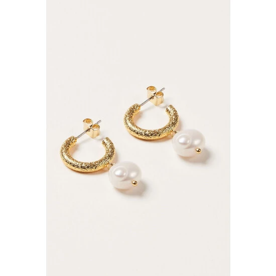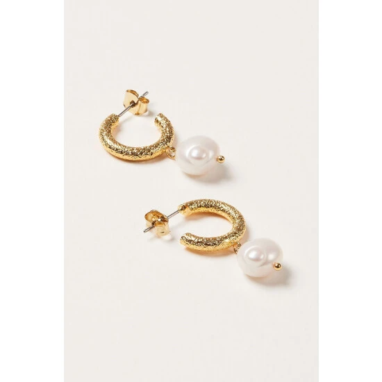 Oliver Bonas Gold Tone Thea Faux Pearl Drop Textured Hoop Earrings