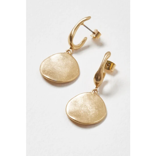 Anchored by gold-toned discs in a matte finish, these drop earring feature small organic-shaped bars and butterfly back fastenings.