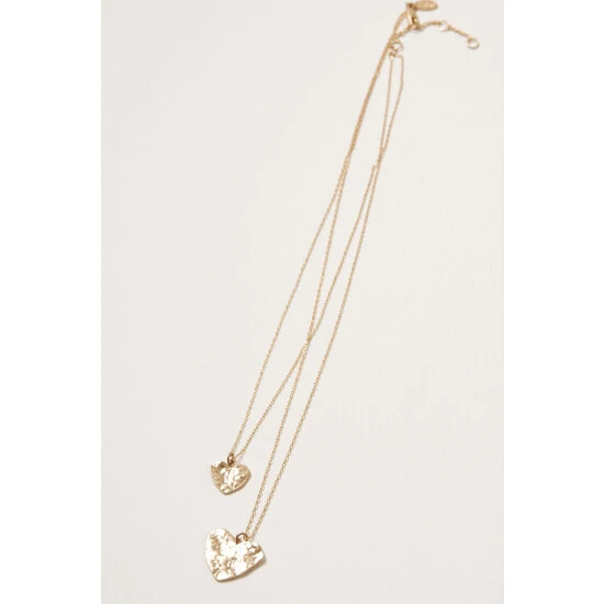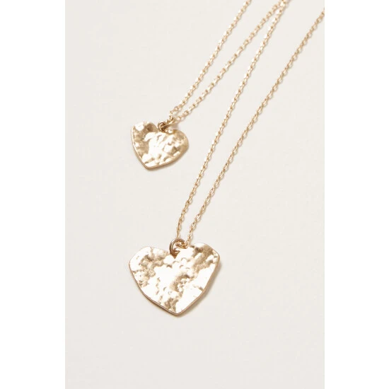 Oliver Bonas Gold Zada Hammered Heart Double Row Layered Necklace