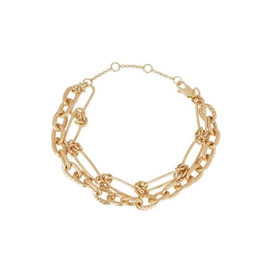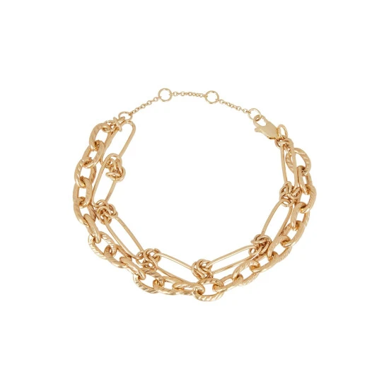 This layered bracelet features two interlinked chains, complete with an extendable chain and a lobster clasp.