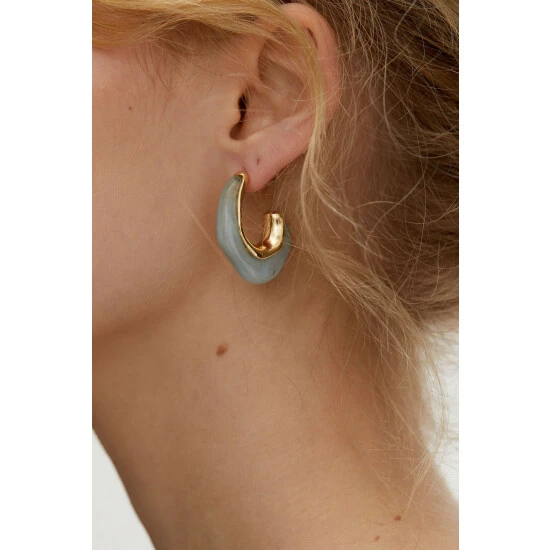 In an organic wave shape, these statement light green acrylic hoops are contrasted with a gold-toned lining and sit on stud backs.