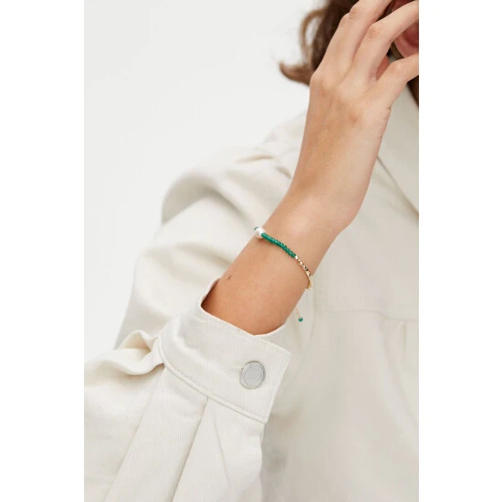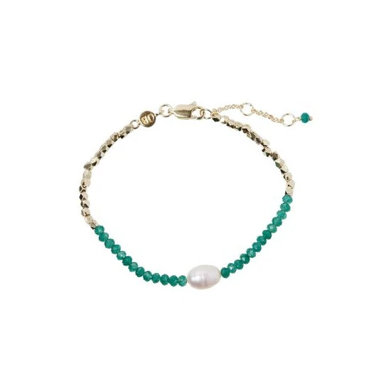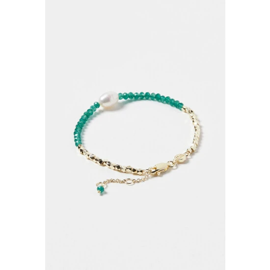 Oliver Bonas Green Geila Beaded Jade And Pearl Gold Plated Chain Bracelet