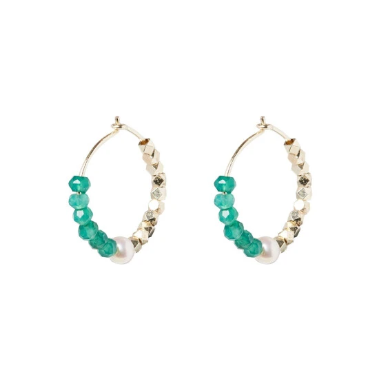 Oliver Bonas Green Geila Beaded Wire Pearl Gold Plated Hoop Earrings