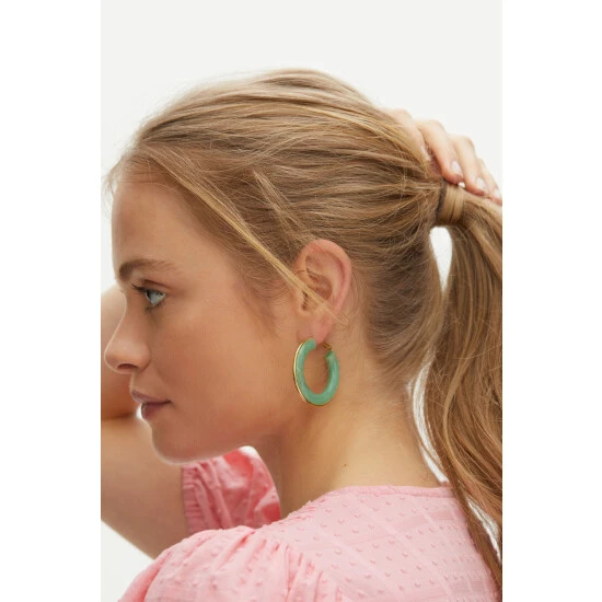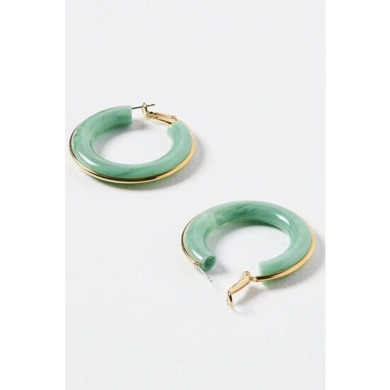 Update your favourite pair of earrings by adding the touch of green resin in these chunky hoops, complete with gold toned hardware and latch backs.