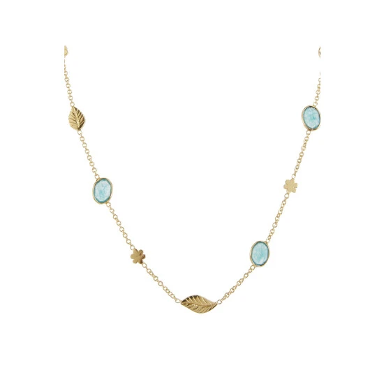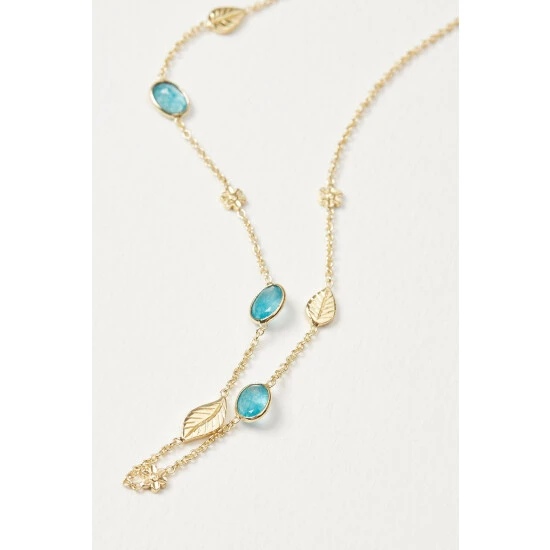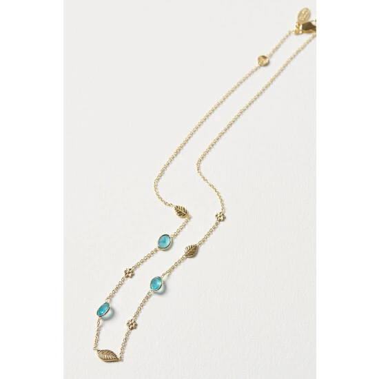 Oliver Bonas Green Treasure Flower Leaf And Stone Detail Collar Necklace