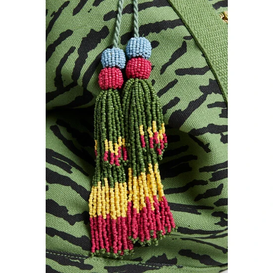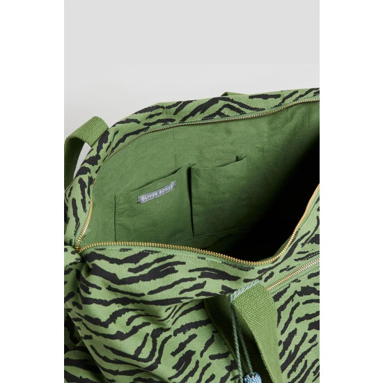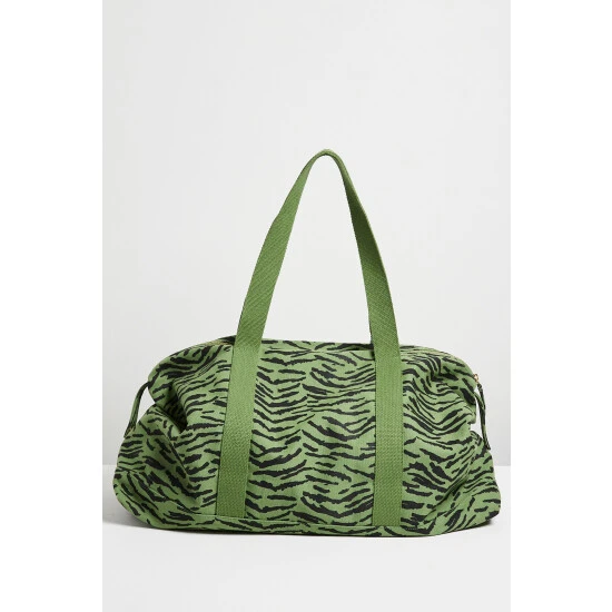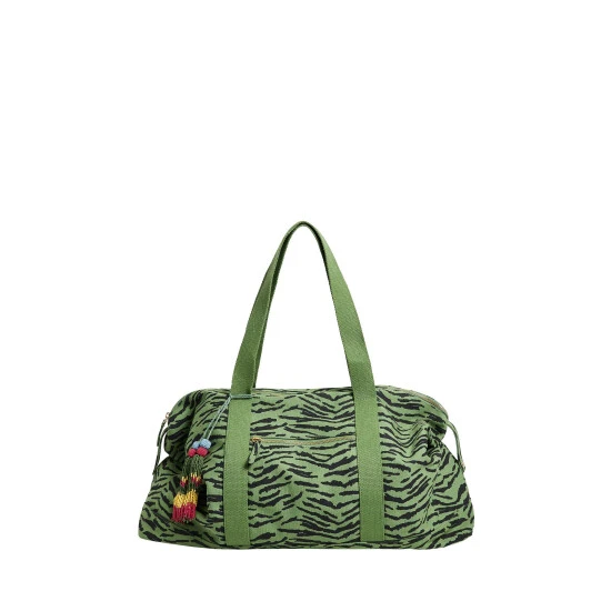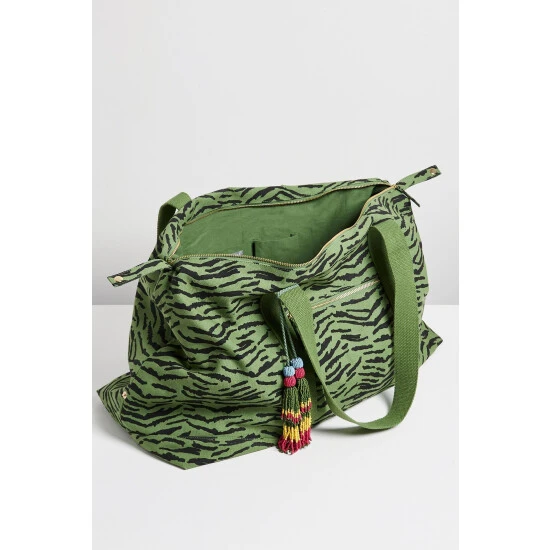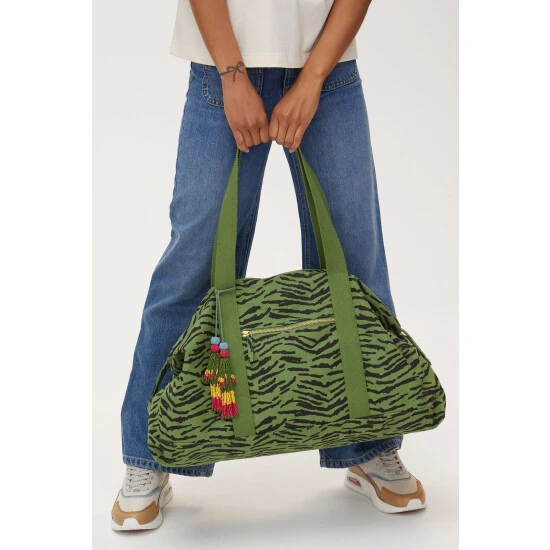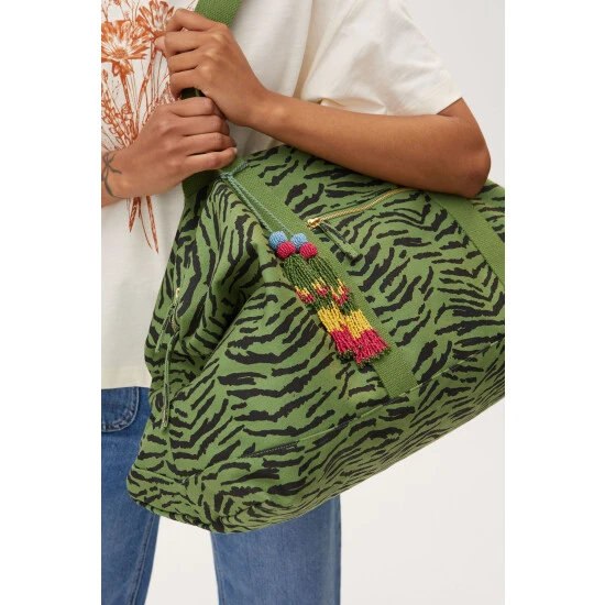 In an on-trend green tone with black animal print, this spacious weekend back has one large compartment with two small inner pockets for your essentials. A colourful tassel accessory sits to the side of the zipped outer pocket, with shoulder straps above for when you are on the go.