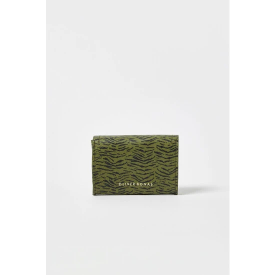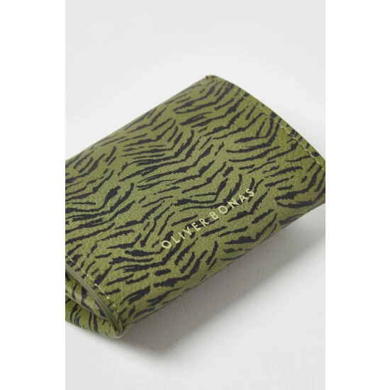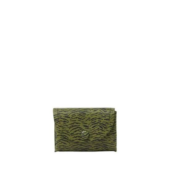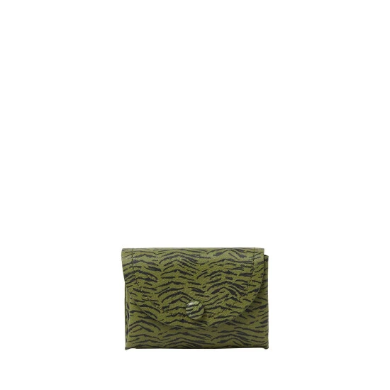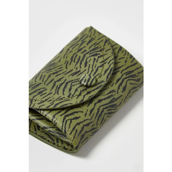 Keep your cards or coins safe in this khaki green card holder, adorned in a zebra print with a gold toned popper fastening.