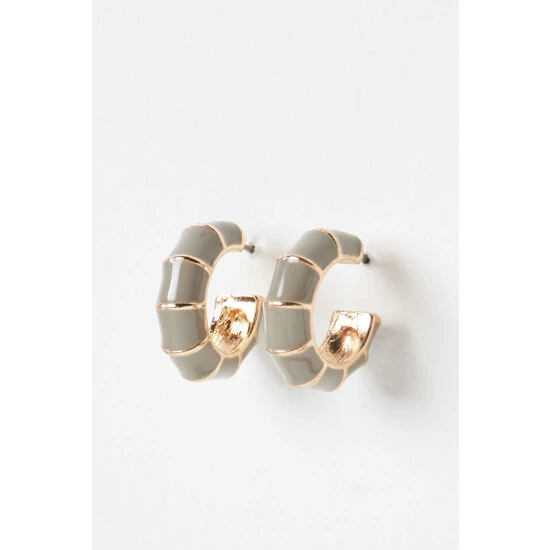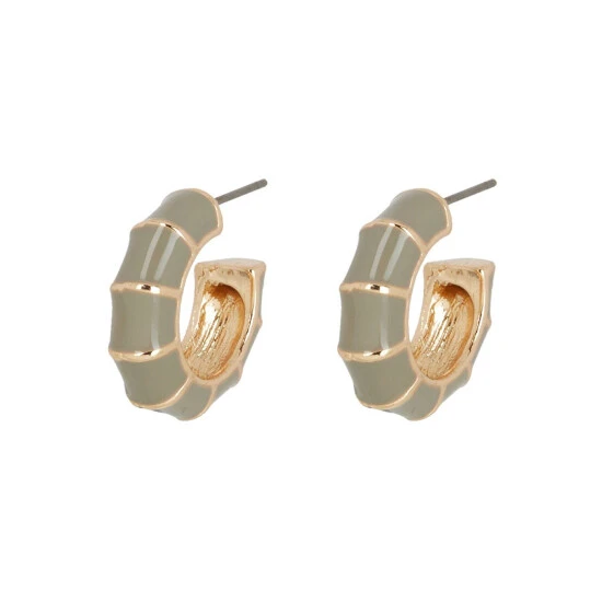 These mini gold-toned earrings combine a bamboo design with a sage green enamel coating, complete with stud backs.