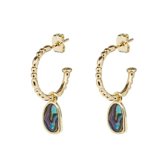 On gold-plated textured hoops hangs a paua shell in lay drop, complete with stud backs.