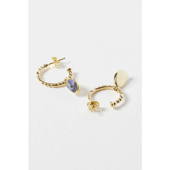 Oliver Bonas Grey Blythe Pebble Charm Paua Shell Gold Plated Hoop Earrings