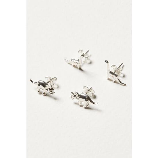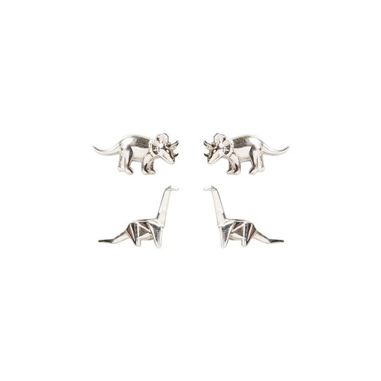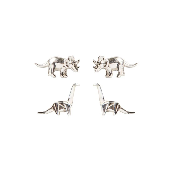 Delight friends, family and dinosaur fanatics with this set of two dinosaur studs. Featuring triceratops and brachiosaurus styles, these earrings are finished in 925 silver and stud backs.