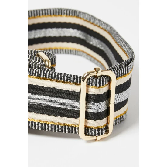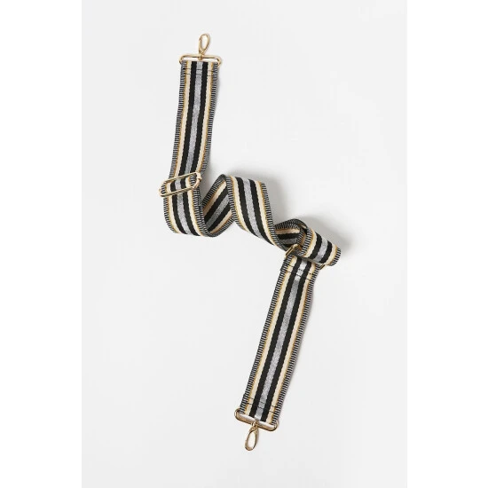Switch up your strap with this replacement bag strap in gold, silver and black striped pattern with gold-toned metalware.