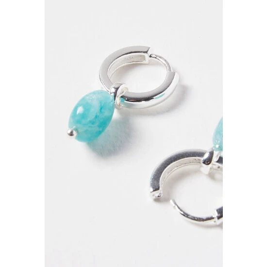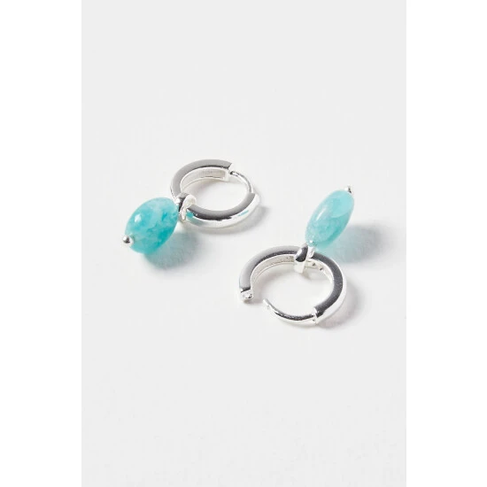 Oliver Bonas Lucia Blue Chunky Sterling Silver Hoop And Oval Amazonite Drop Hoop Earrings