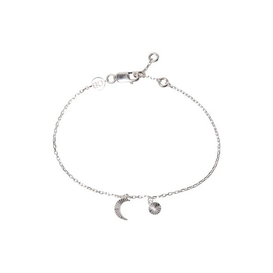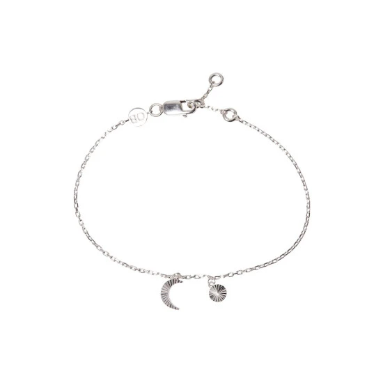 Oliver Bonas Luna Engraved Moon & Disc Sterling Silver Chain Bracelet