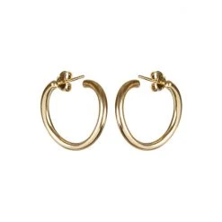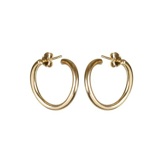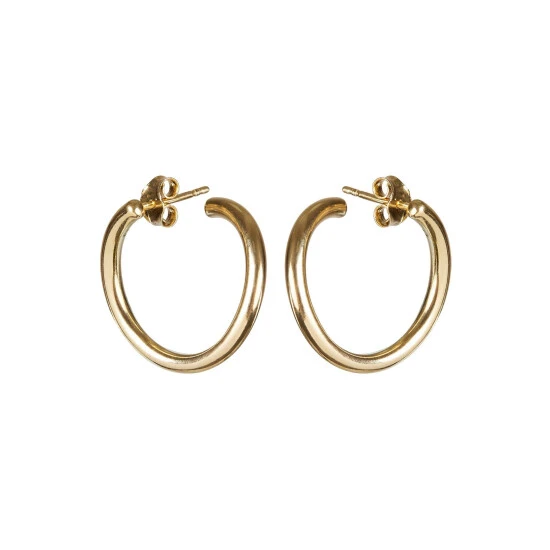 In a luxe golden tone, these classic hoop earrings have a gentle curve and are suspended from stud backs.