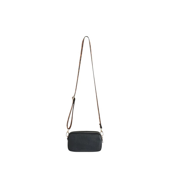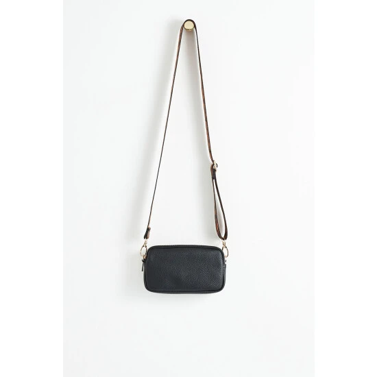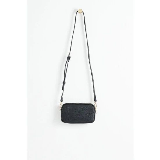 In an all over black tone, this phone cross-body bag is in a rectangular profile featuring two detachable cross-body straps and two zipped compartments, completed with luxe gold-toned metalware.